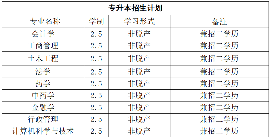 我校各专业均兼招本科二学历和符合免试条件的免试生,外语语种只招收英语考生。详情请登录报名网站。
