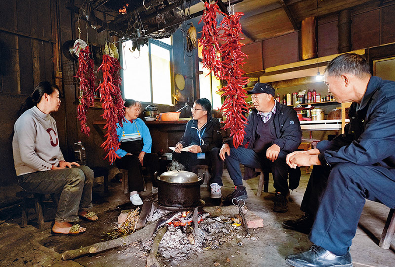 各地纪委监委紧盯惠农政策落实、涉农补贴发放等情况,组织纪检监察干部深入农村农户、田间地头,倾听民声民意,收集问题线索。图为2024年10月29日,广西融水苗族自治县纪检监察干部在滚贝侗族乡三团村走访了解相关情况。 中新社发 龙林智/摄